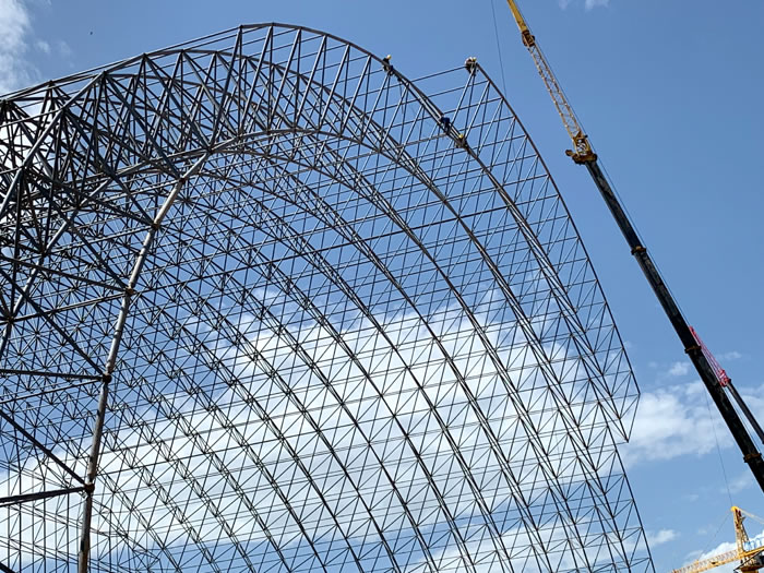 (2)网架加工前应对现场尺寸进行复测,确认无误后方可进行加工、安装;网架制作、运输、安装应遵守《空间网格结构技术规程》JGJ7-2010、《钢网架铁力螺栓球节点》JG/T 10-2009、《钢网架铁力螺栓球节点用高强度螺栓》 GB/T 16939-2016、《铁力钢结构铁力工程铁力施工规范》 GB50755-2012、《铁力钢结构铁力工程施工质量验收标准》 GB50205-2020。